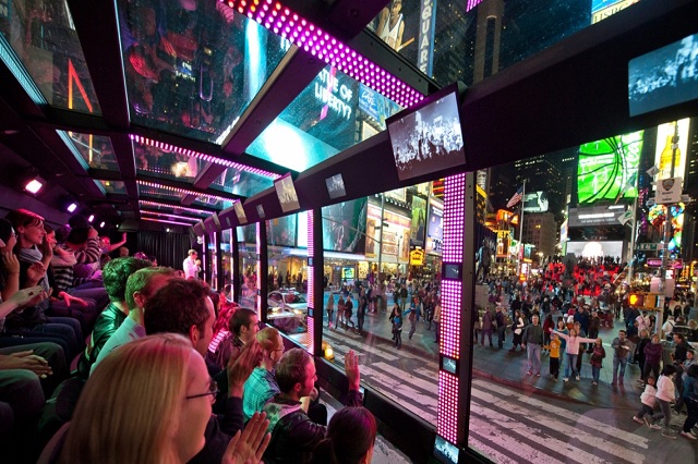 Đi xe buýt ngắm cảnh The Ride là một cách để xem các điểm tham quan của thành phố New York. Trải nghiệm tương tác này sẽ giúp bạn có cái nhìn khác lạ về thành phố từ hàng ghế đầu. Khởi hàng từ quảng trường Thời đại, chuyến đi sẽ giúp bạn tham quan các địa danh nổi tiếng khác của thành phố, và các buổi biểu diễn đường phố trực tiếp. Mỗi chuyến đi là những điều mới mẻ, tùy thuộc vào những gì bạn gặp trên đường ngày hôm đó.